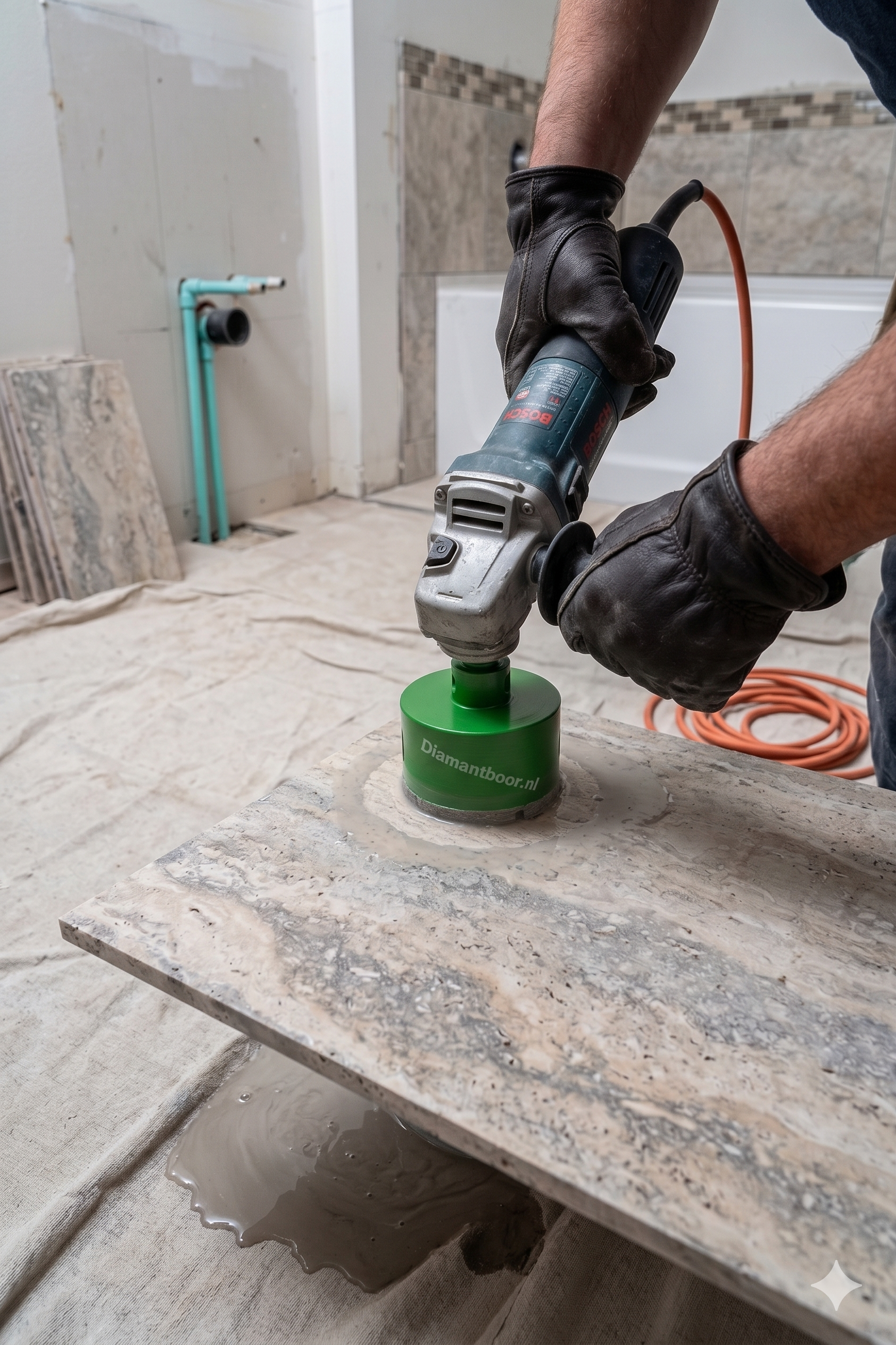 - Boren in natuursteen zoals marmer, graniet en leisteen